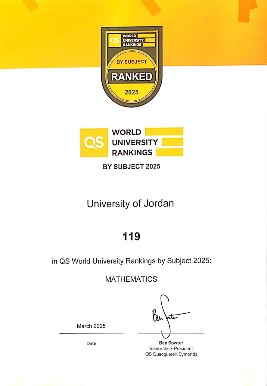 The Mathematics Department achieved the highest levels in the QS ranking (119).